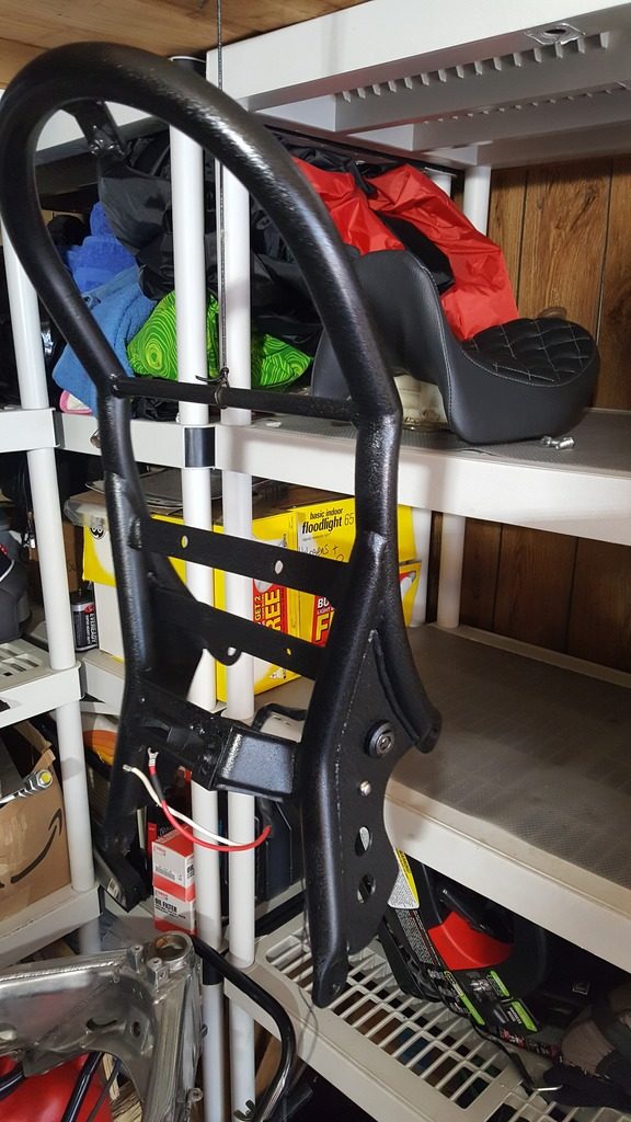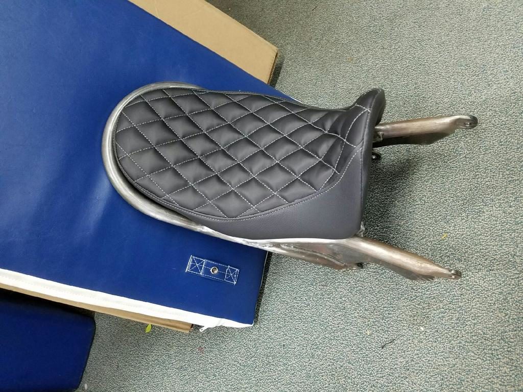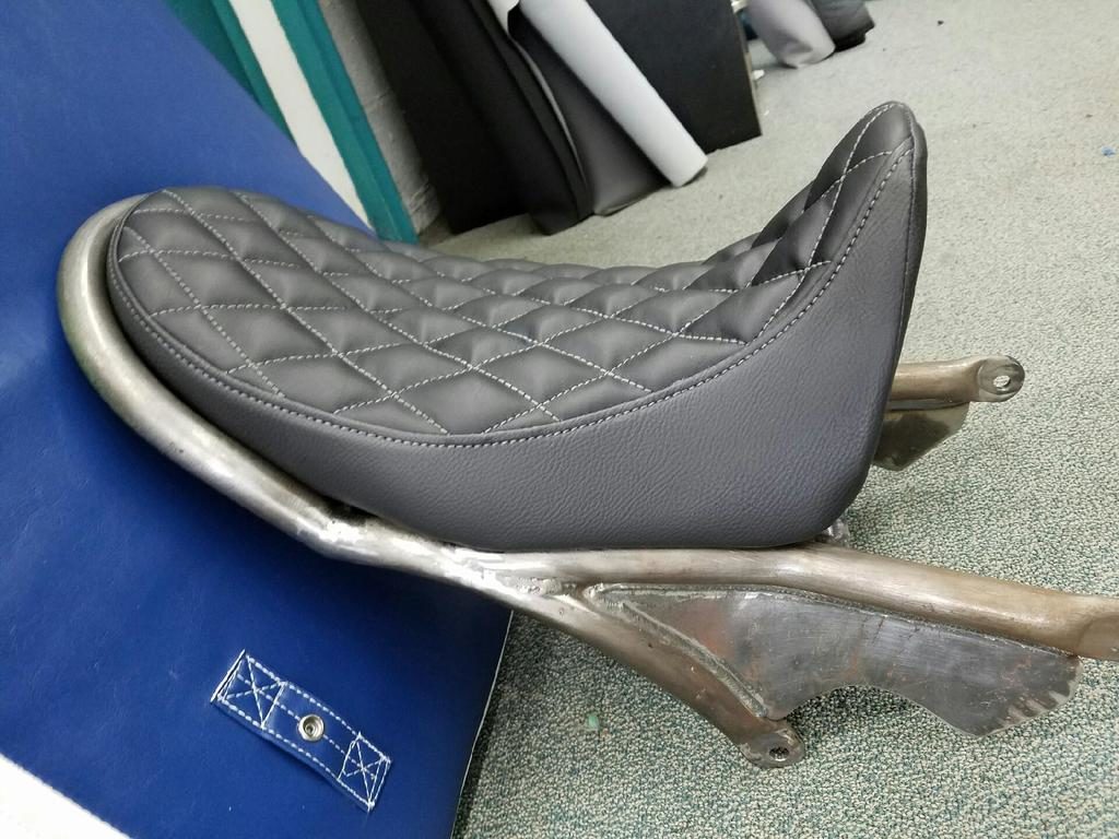 I was not happy with the first tail modification and decided to have something custom built that flows with the tire. The new tail frame is made from 1 inch chromoly tubing, the seat is custom made.