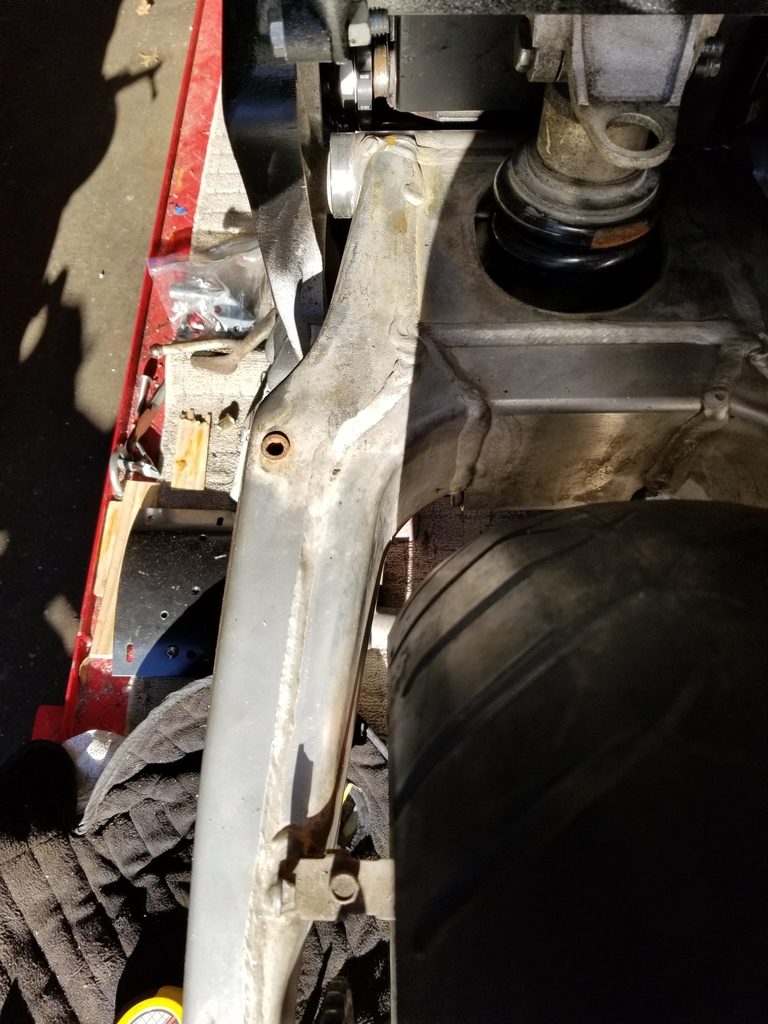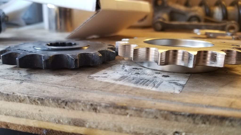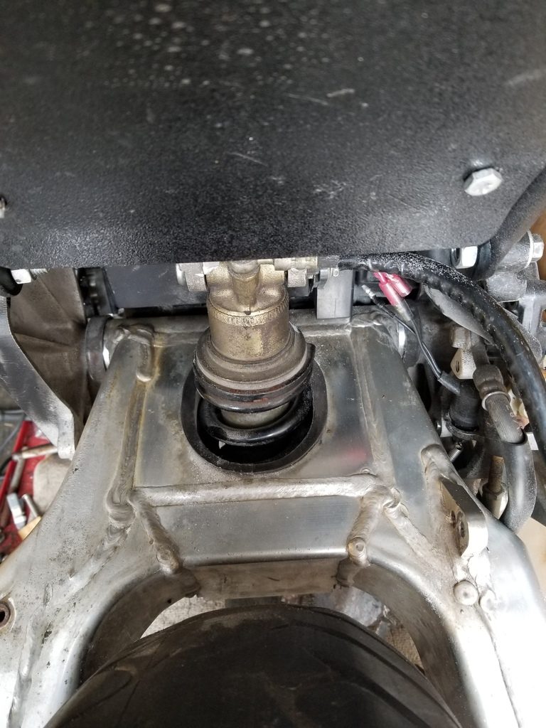 On the 92 swingarm, the width at the pivot is the same as the stock. However, pivot bolt as well as axle diameters are larger. Since I did not want to drill the frame to fit the larger pivot bolt, I decided to use the stock pivot bolt and swingarm bushing. Conversion needle bearings ensured the proper fit. The make and model of that is pictured below. After the conversion bearings are pressed in, everything is pretty much a straight swap. There are a few issues though: the new linkage is bigger and hits the exhaust. The foot pegs/heel guards are too close to the swingarm and require spacers (I am using two washers and all is well). Also, the original shock mount on the frame has to be cut to fit the new rear shock which has a remote reservoir. Last but not least, with the original 47 teeth sprocket, the axle adjusters have to be all the way back preventing further chain adjustments in future. I went one tooth up to fix this. The larger diameter also prevents the chain from rubbing on the chain guide too much.
