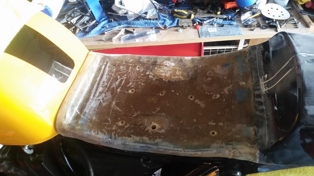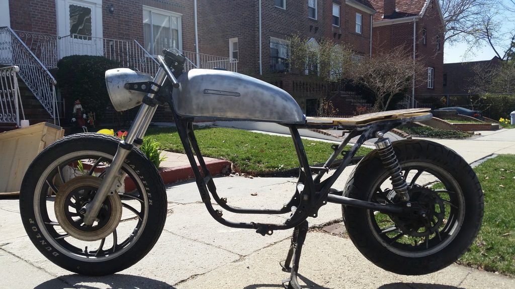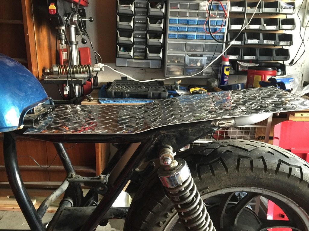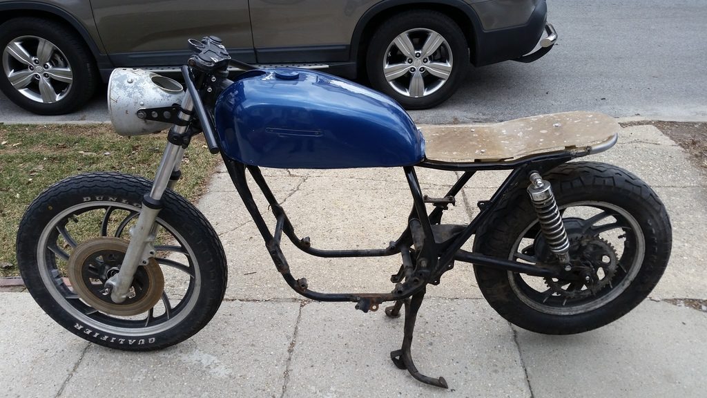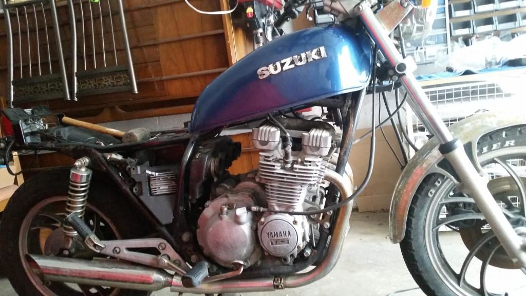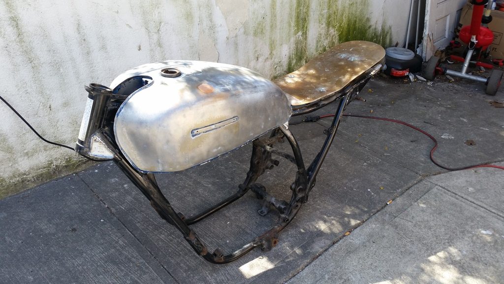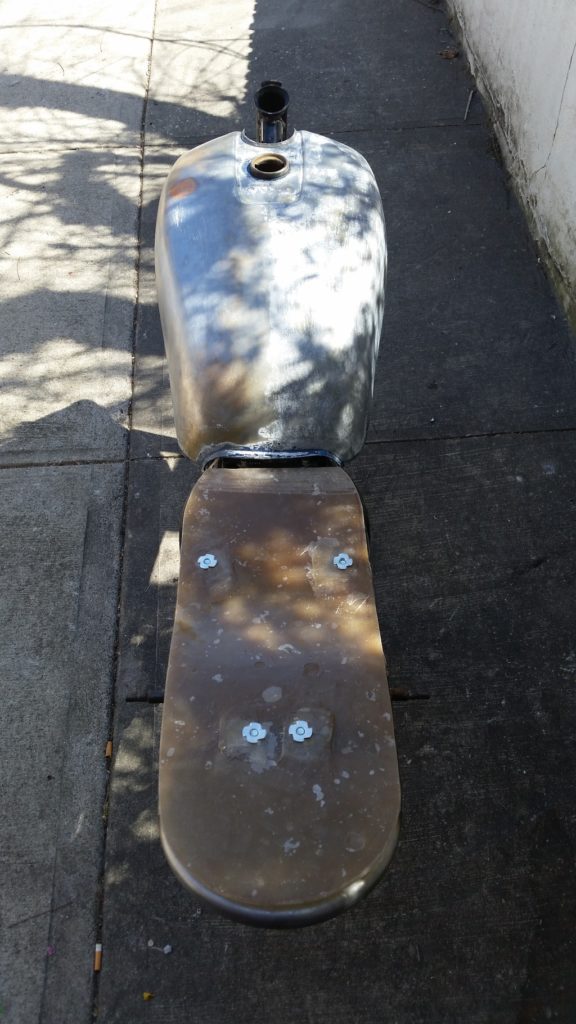 Suzuki GS550 tank (around 1980?), welded neck area, modified/welded area to attach to frame